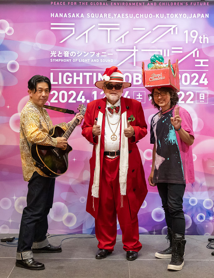 デビュー40周年を迎えた米米CLUBのボーカル ジェームス小野田とトカトのボーカル トラ、パーカッショニスト森秀輝によるクリスマスコンサート。
